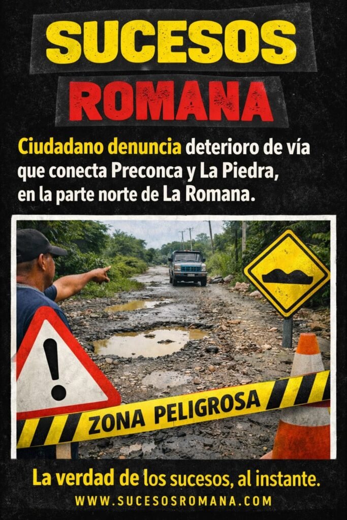 <p>LA ROMANA, República Dominicana.–<br>Un ciudadano realizó una denuncia pública solicitando la urgente intervención de la vía principal que conecta los sectores Preconca y La Piedra, la cual se encuentra en avanzado estado de deterioro, llena de hoyos y con serias dificultades para el tránsito vehicular.</p>